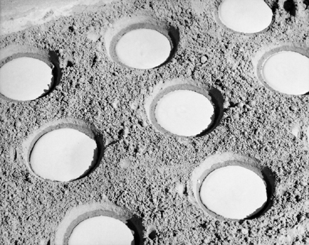 Die dritte und aktuellste Gruppe von Arbeiten umkreist das Werk des italienischen Architekten Paolo Soleri, dessen lebenslanges Projekt – die Idealstadt Arcosanti – als Alternative zur Urbanisierung geplant wurde. Bereits Mitte der 1950er-Jahre entworfen, wird die Stadt Arcosanti seit den 1970er-Jahren in der Wüste Arizonas gebaut. Um die Wirkung dieser imposanten Anlage zu übertragen, hat Froment einige der signifikanten Strukturen aus Arcosanti in Soleris so genannter Erdabguss-Technik modellhaft nachempfunden. Diese Objekte sind als Earthworks (2015) in der Ausstellung im Badischen Kunstverein erstmals zu sehen und werden von einer Serie neuer Fotografien unter dem Titel Negative Architecture (2015) begleitet. Soleri ist zudem für die Fabrikation keramischer Windglocken bekannt, die noch heute produziert werden. 21 Glocken wurden in Arcosanti für den Kunstverein neu gegossen – für Froment ein Sinnbild für Soleris visionäre Architektur en miniature.