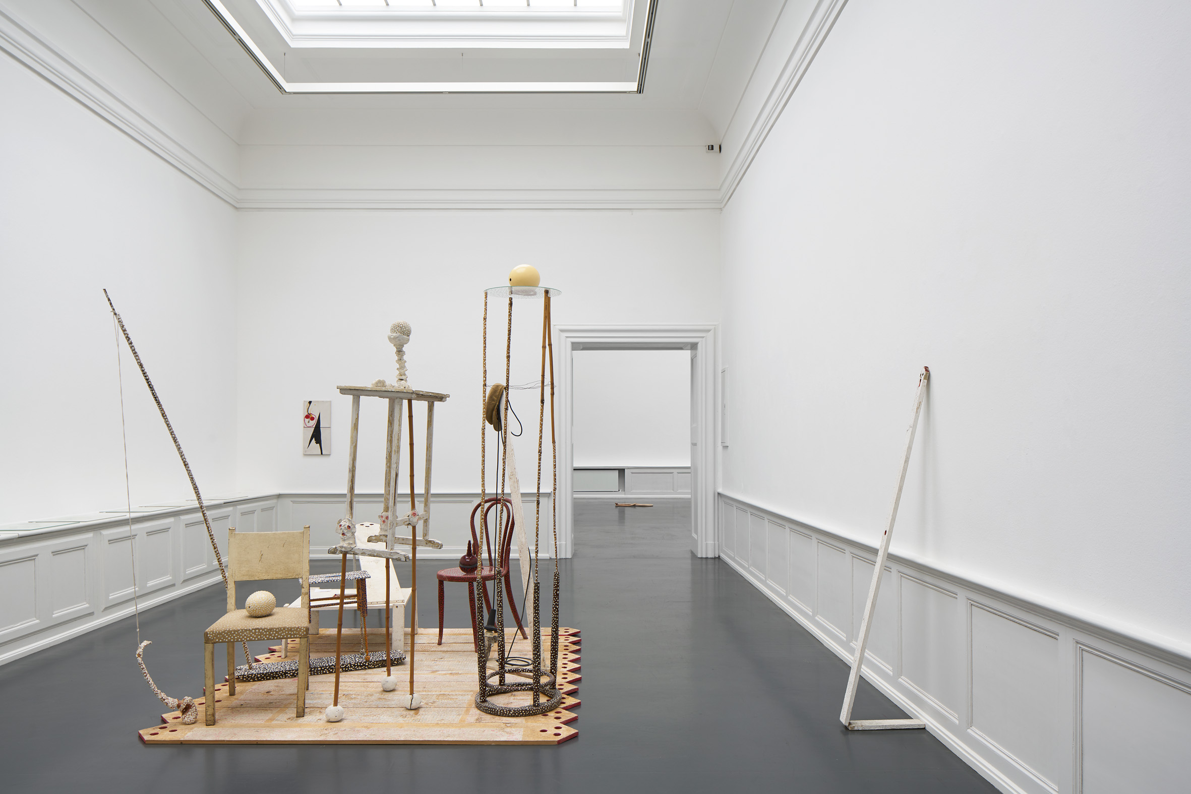 Heinz Frank, Selbst flüssig, klammert sich an überflüssig, Ausstellungsansicht, Badischer Kunstverein, Karlsruhe 2019. Foto: Stephan Baumann, bild_raum